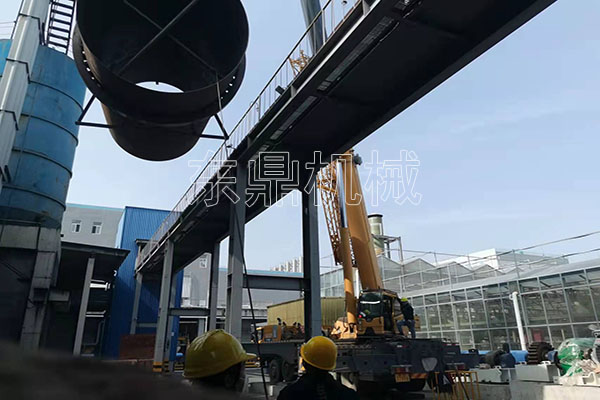 鄭州東鼎藥渣烘干機安裝工作正式展開,項目進展一切順利